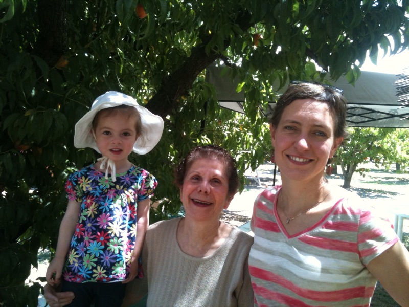 – All four of us going to pick peaches from an orchard in Brentwood, which was super fun! The peaches were gorgeous, Ada pulled the wagon & picked her own, and we were awestruck by the freshness & fragrance of them all. We then, over the course of the next 3 days, baked 4 pies and 1 cobbler with our peaches. Yum! Yum! Yum! Ada had a lot of fun with all of the hubbub in the kitchen. And we had fun eating our creations.